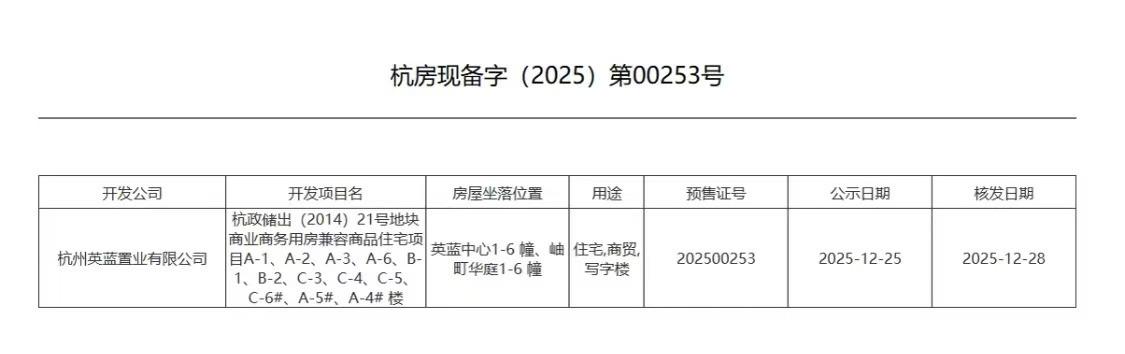 昨天,杭州香积寺旁、拿地已超11年的杭州英蓝中心股融通,终于领出了新房预售证。