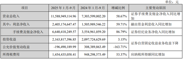 从营收构成来看,利息净收入24.05亿元,同比增长59.71%;手续费及佣金净收入占到大头,为66.4亿元,同比增长86.79%,占到营业总收入的一半以上,主要因证券经纪业务净收入同比增加。三季度报告未披露具体的经纪业务收入,从半年报来看,上半年证券经纪业务净收入为33.49亿元,同比增长67.56%,在全部手续费及佣金净收入中占到87.05%,其中绝大部分是代理买卖证券业务。