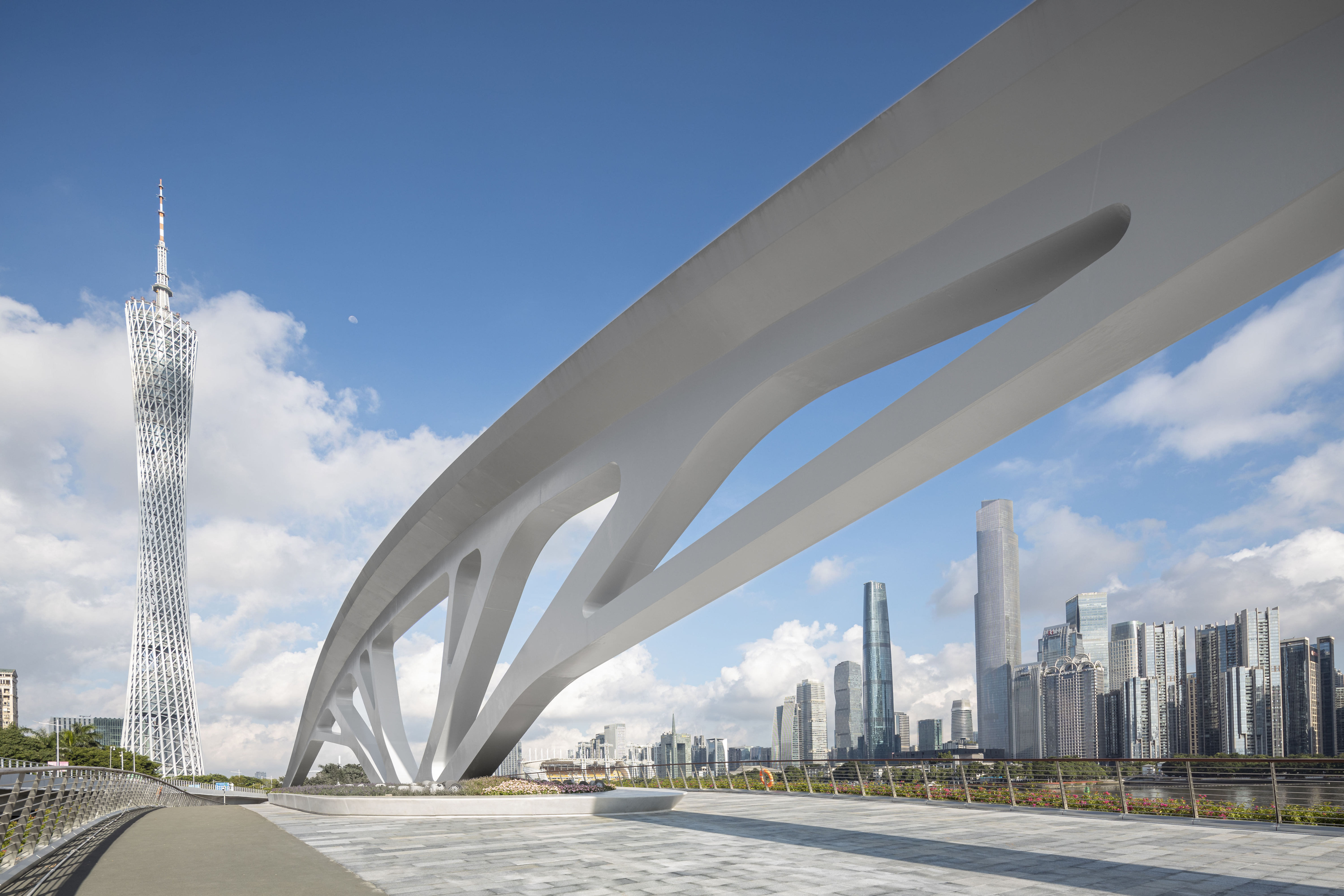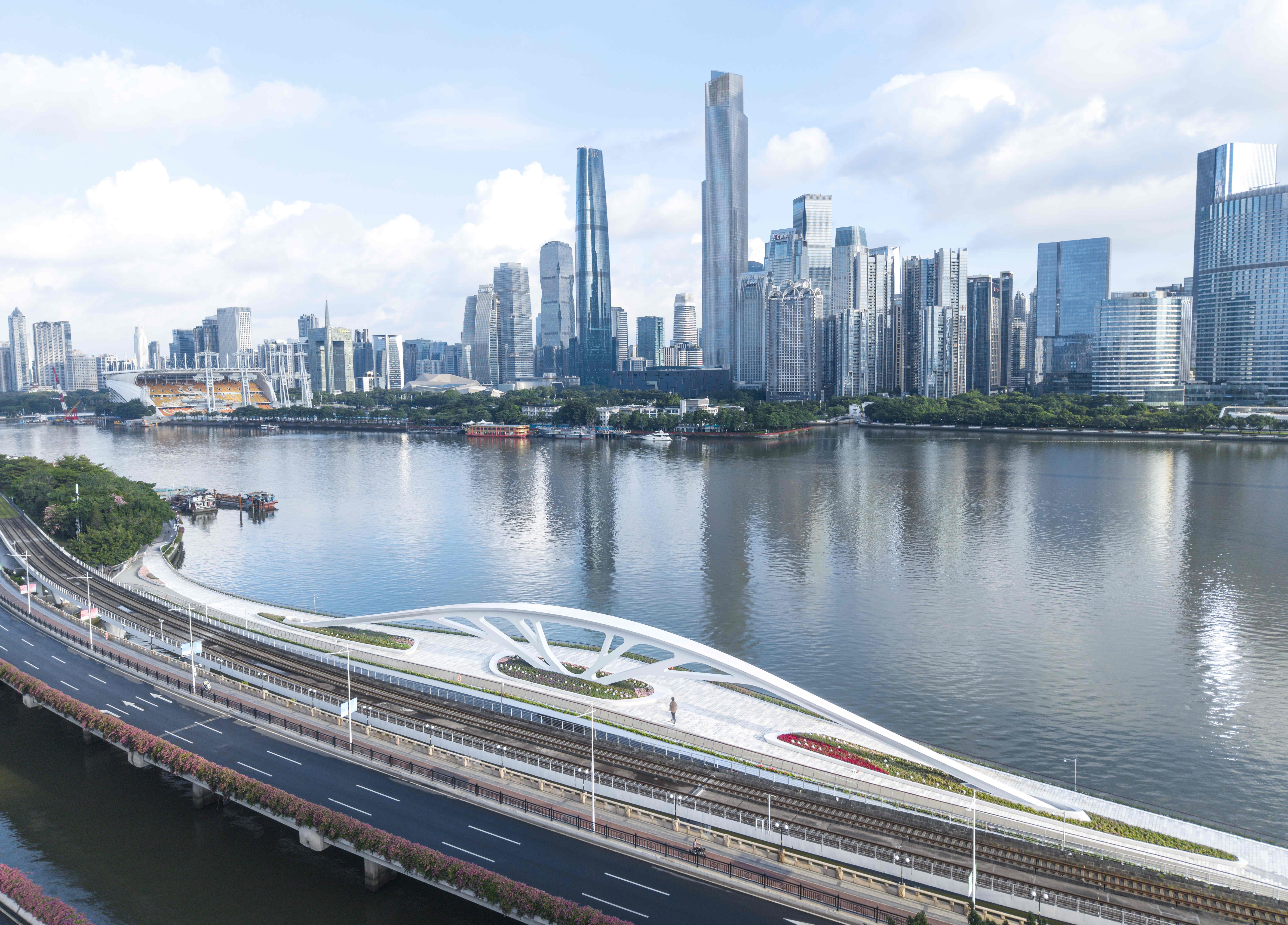 同时,以“榕生水岸,水鸟天堂”为理念,构建人、桥、自然和谐共生的景观场景,兼具生态美感与通行功能,有效提升广州大桥南至猎德大桥南滨水段的通行效率,打通滨江碧道连通的断点,成为继海心桥后珠江上又一座具有生态温度与人文厚度的城市新艺术装置。